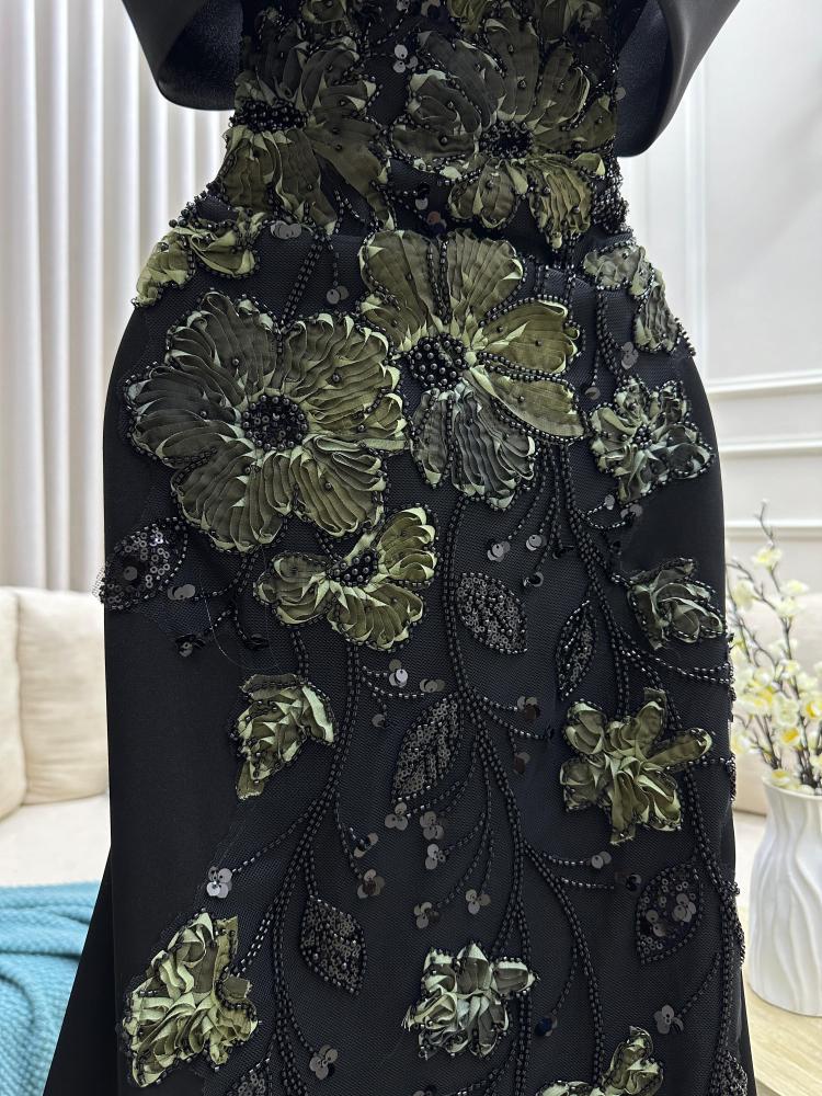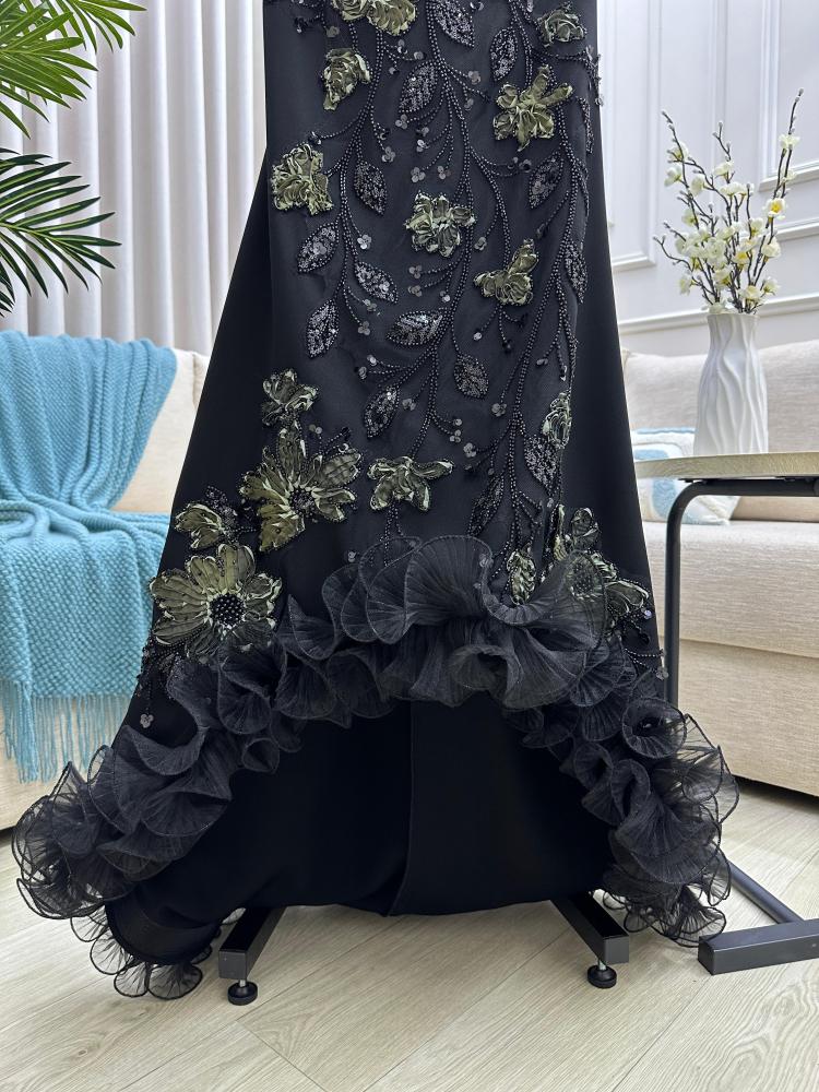 الغسيل اليدوي المفضل: يُنصح بغسل الفستان يدويًا بالماء البارد وباستخدام منظف لطيف مخصص للأقمشة الحساسة، مع تجنب الفرك القوي أو العصر للحفاظ على جودة القماش والتطريز.